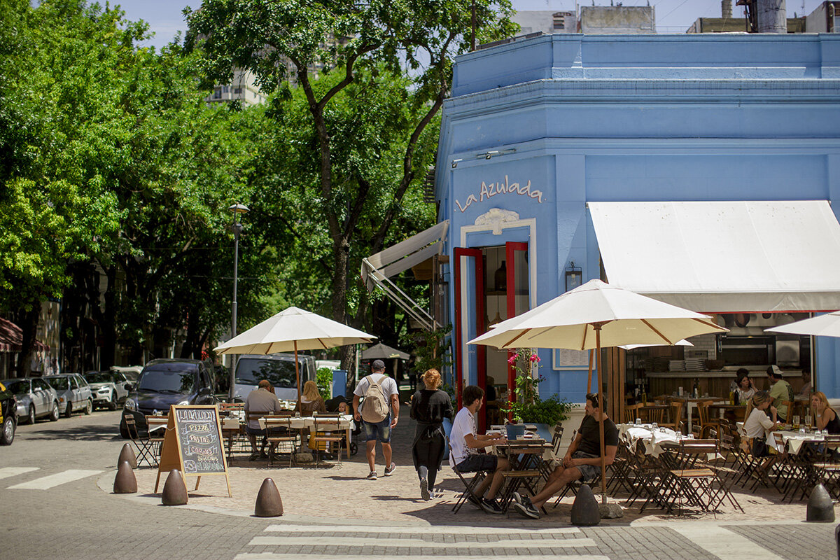 Upravo zbog tako pravilnog gradskog rastera, centar grada je moguće doživjeti samo kao lokaciju koju preporučuju vodiči. Veliki centralni trg oko kojeg su predsjednička palača (zbog svoje roze fasade nazvana Casa Rosada) i katedrala ili najšira avenija na svijetu 9 di Julio sa svojim poznatim obeliskom i svjetlećim muralom Evite Peron osim mjesta za selfie ne pružaju gotovo ništa više. U šetnji ulicama punih dućana, ulazimo u knjižaru El Ateneo čiji interijer je gotovo u potpunosti restauriran stari neo-barokni teatar u kojem su knjige izložene na parteru i u loggiama, a kavu pijemo na bivšoj pozornici. Međutim nakon zatvaranja dućana otkrivamo da se život Buenos Airesa očito dešava negdje drugdje, u pravilu unutar rezidencijalnih kvartova, na ulicama ili točnije križanjima tih ulica, jer se cijeli centar ubrzo prazni.