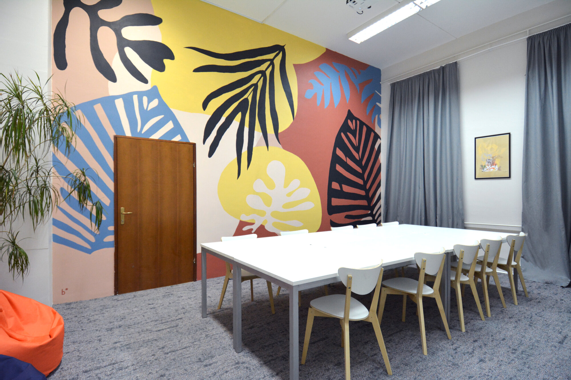 Osim što smo dizajnirali sve prostore i dio namještaja, oslikali smo murale i obojali zidove, postavili pod u učeničkoj sobi, ugradili nove ormare, stolove i stolce, a u hodnicima montirali nove klupe i vješalice. U ulaznom predvorju gimnazije izgradili smo tribinu za okupljanje učenika, oslikali veliki mural i opremili 'dnevni boravak' za neformalno druženje učenika prije ili nakon nastave.