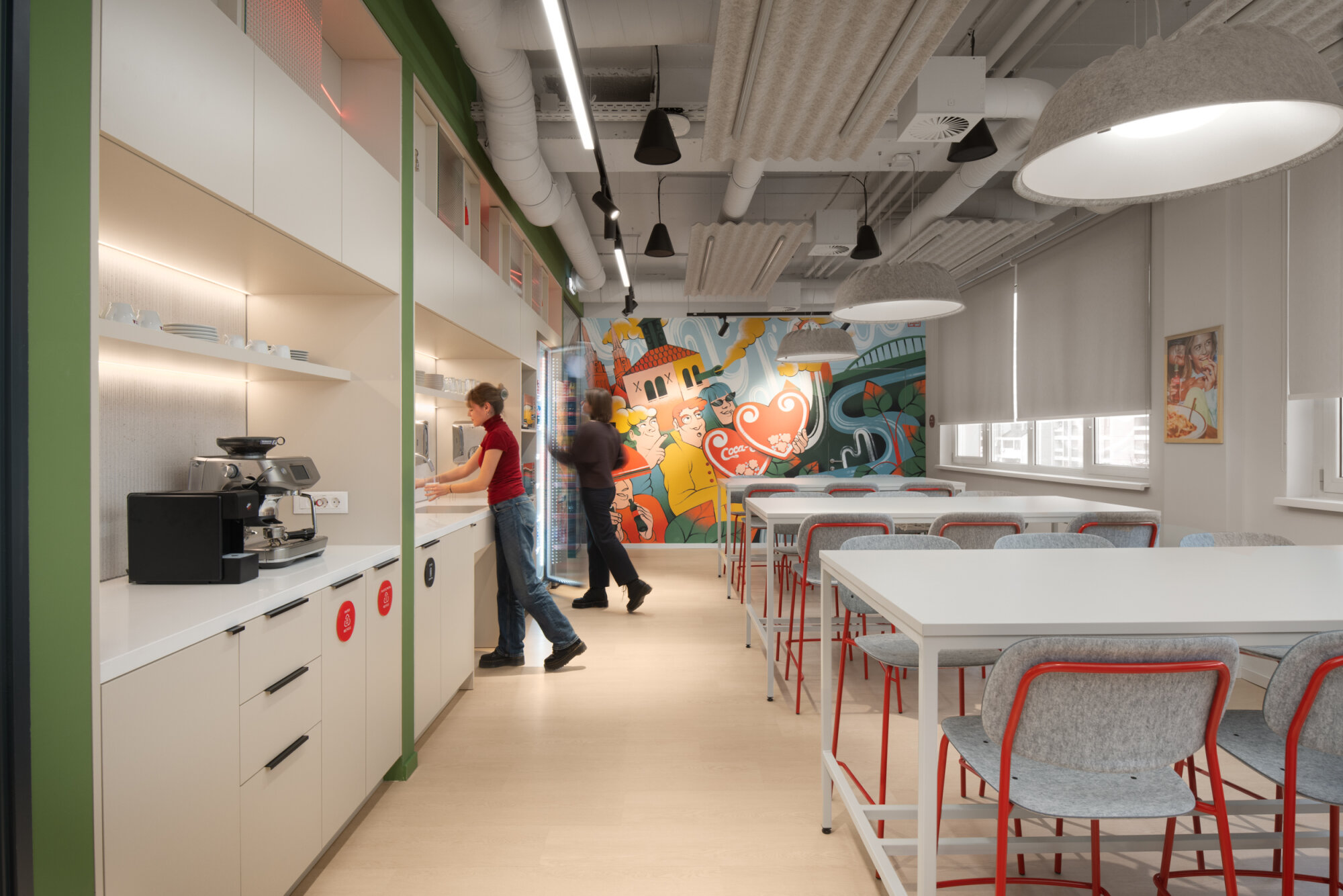 To foster social connection and team cohesion, the office includes a shared kitchen area—a recharge space for collaboration and bonding. A wellness room was also designed to prioritize employees’ wellbeing, offering a space for relaxation, exercise, or quiet retreat. This project reflects Brigada’s dedication to creating human-centered workspaces that balance productivity and emotional engagement. By combining function, comfort, and local character, the design of Coca-Cola Adria’s Zagreb office offers a thoughtful response to the needs of today’s workforce, setting a new standard for workplace environments.