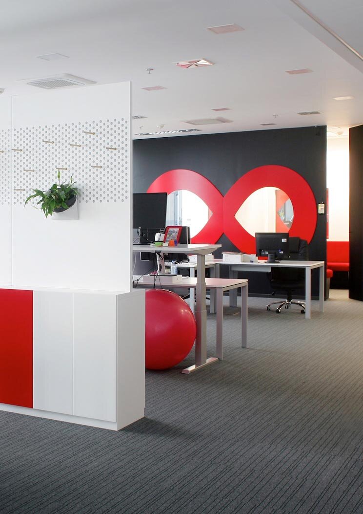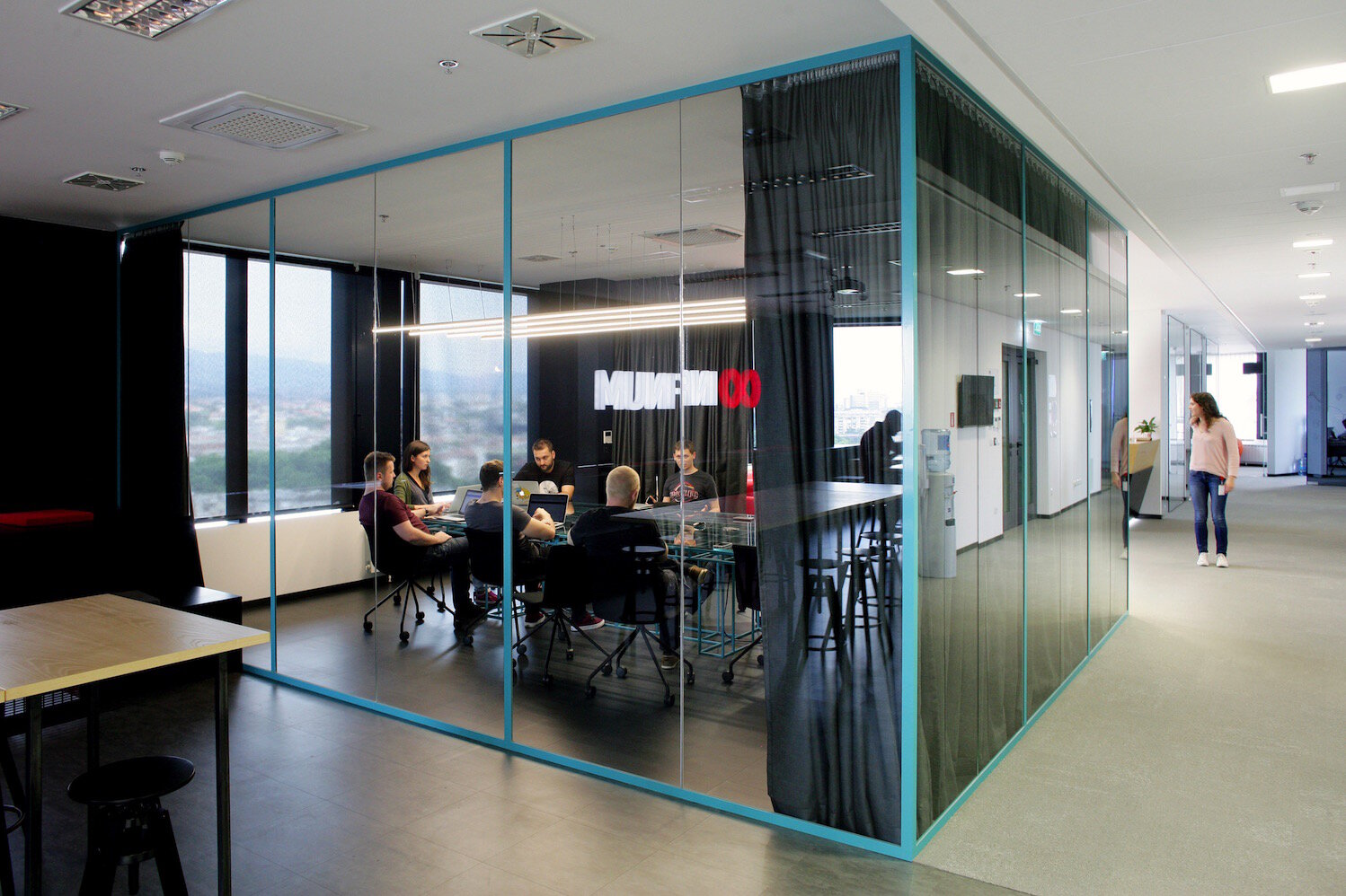 Our objective was to create a space that exudes a sense of power while ensuring the comfort of all employees. We achieved this by employing a simple yet effective design language that incorporates vibrant colours, sleek metal profiles, and a combination of dark and light wood shades. An integral component of the design is the thoughtfully crafted lighting scheme, including discreetly integrated LED lighting within furniture elements. This lighting concept contributes significantly to the desired feeling of speed, modern technology, and the superpowers of Infinum's talented programmers.