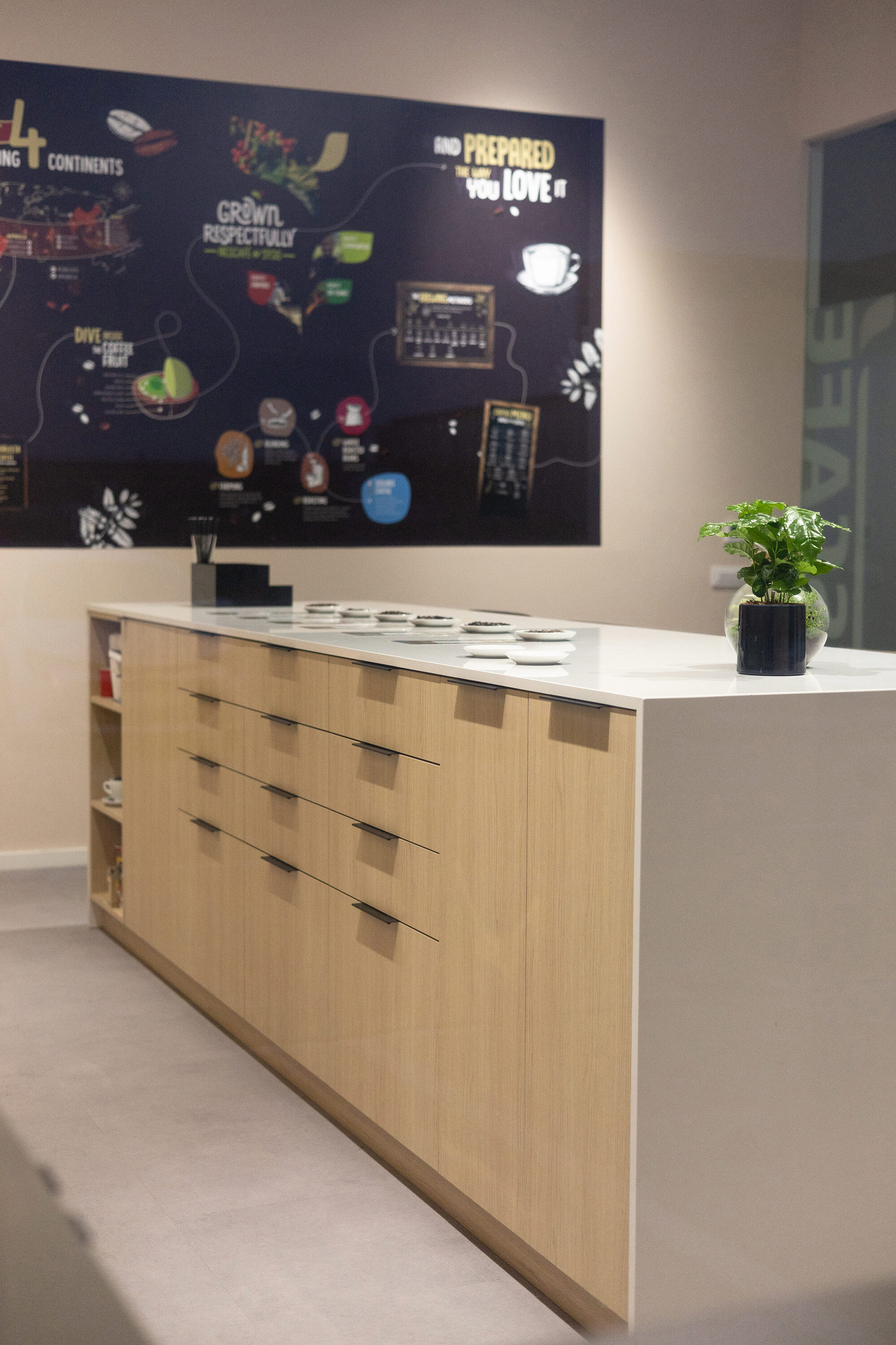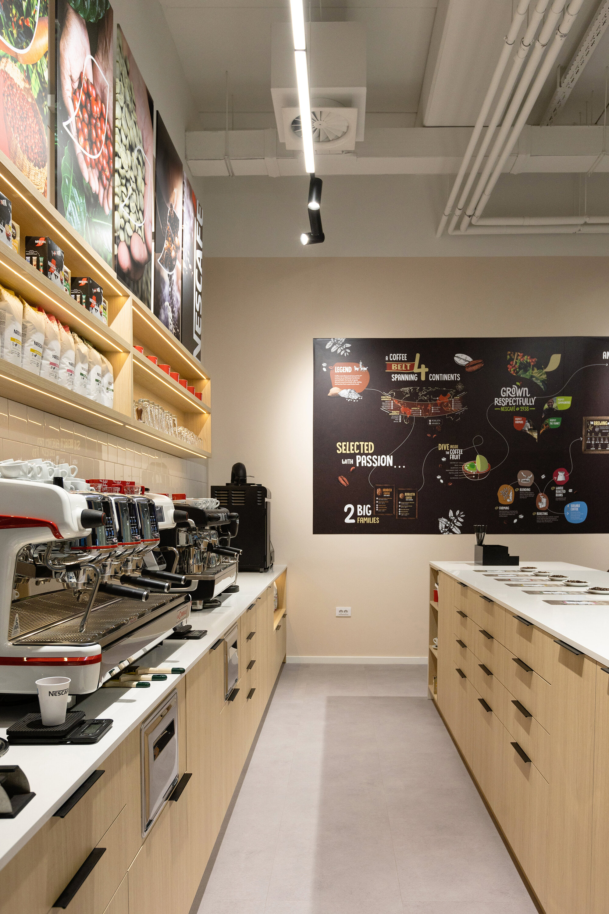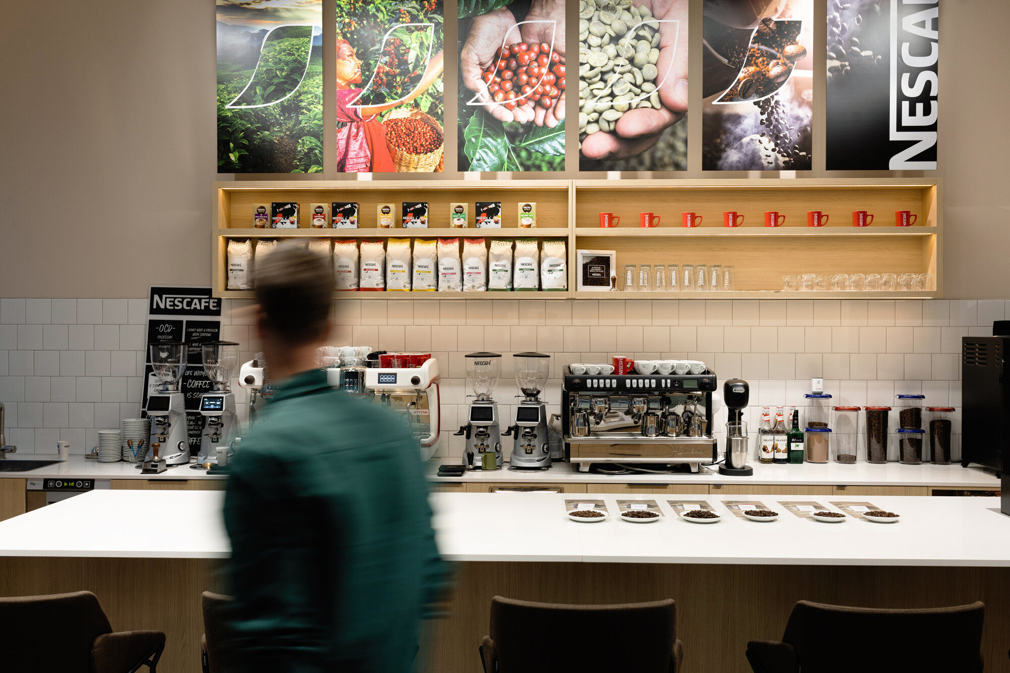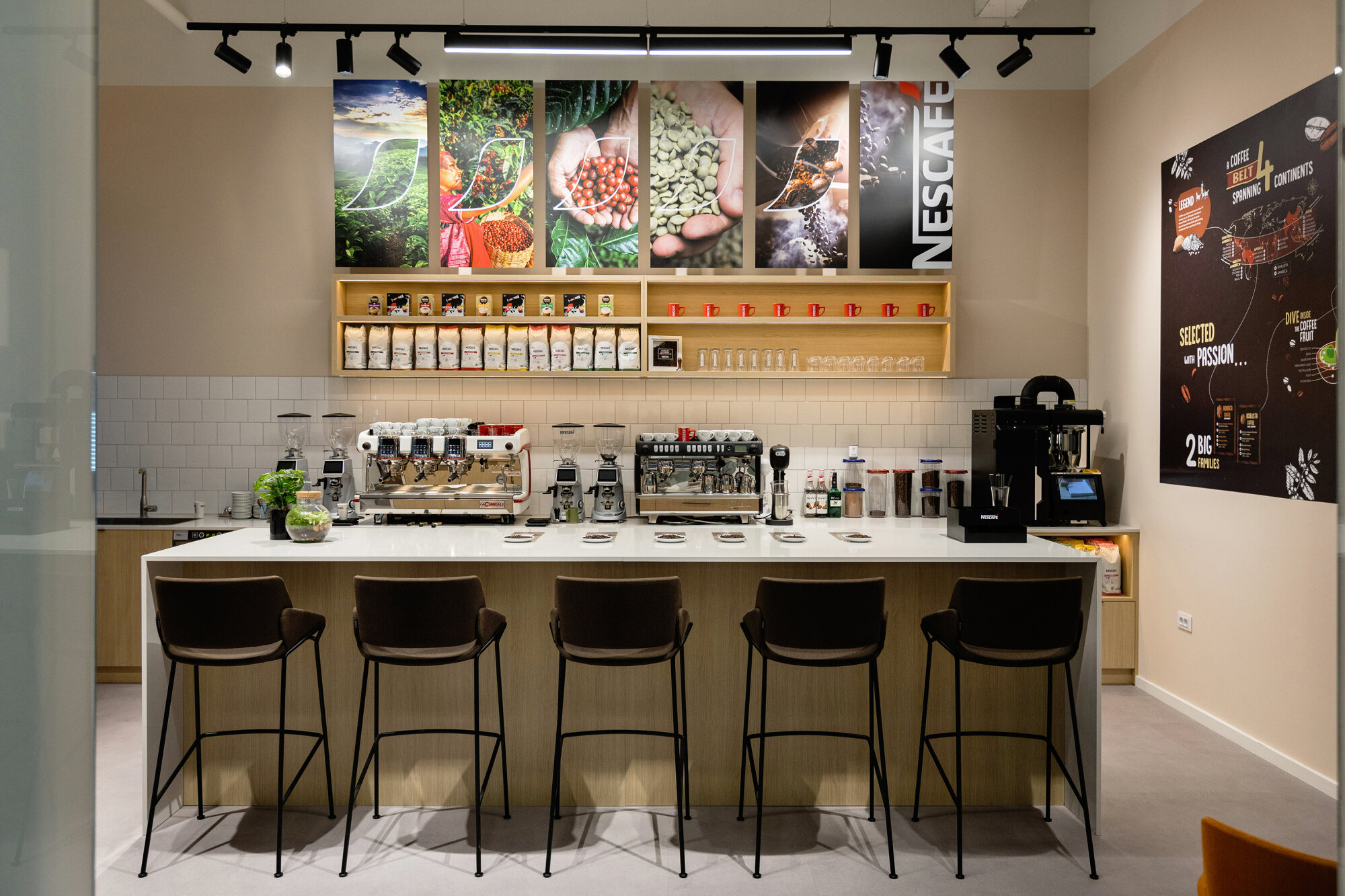 Brigada's collaboration with Nescafe, one of the world's leading producers of coffee products, brings the first company Training Room to the Zagreb headquarters. The initial brief from the client was creating a B2B space dedicated to showcasing, tasting, and educating the public about the extensive range of products within Nescafe's portfolio and its wider culture of the professional coffee barista world.